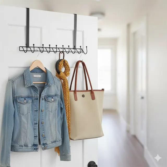 “Ghorer jayga kom? Chinta nei! 🏠 Amader ei Door Hook Hanger diye khub shohojei apnar bag, jama, ba towel guchiye rakhun ekebare kom jaygay. No drilling, no mess! ✨ Ghor ke rakhun gochano ebong shundor.”