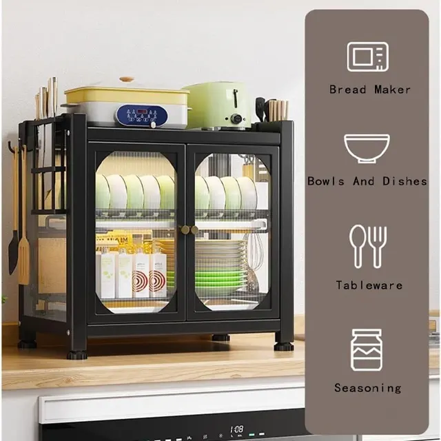 Freestanding Dish Rack Cabinet – Compact Countertop Organizer with Drawers & Shelves: Your ultimate solution for organized and dust-free countertops.