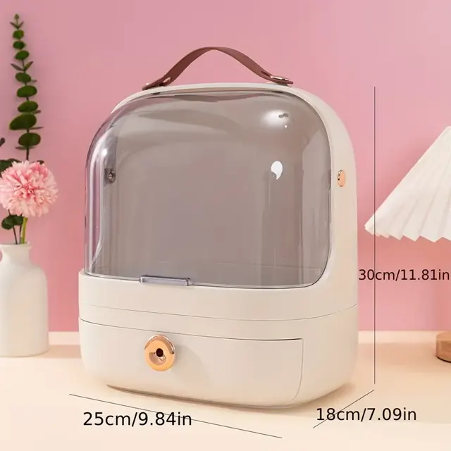 Makeup Organizer with Brush Holder – Portable Cosmetic Storage with Drawer & Carrying Handle: Transform Your Beauty Routine into an Art