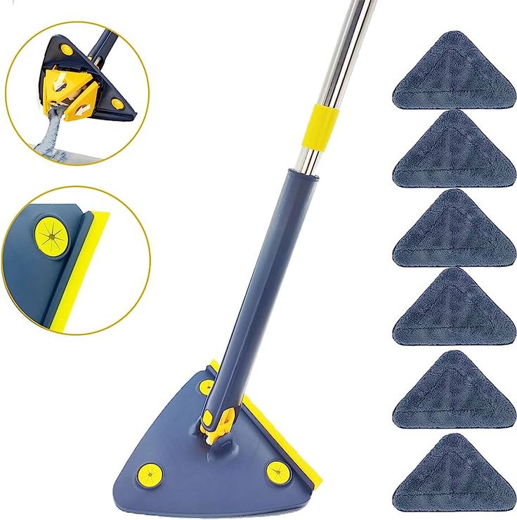 Details: Extended Triangle Mop 360 Twist Squeeze Wringing XType, Window Glass Toilet Bathroom Floor Household Cleaning, Ceiling Dusting etc.
